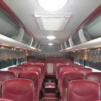 Xe trang bị ti vi LCD, tủ lạnh, cửa lên xuống tự động, đặc biệt là khoang chứa hành lý cực kỳ rộng rãi thoáng đãng đảm bảo hành trình vi vu mà không phải bận tâm nhiều đến không gian di chuyển trên xe…